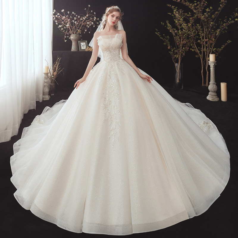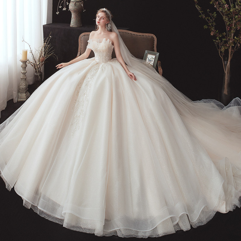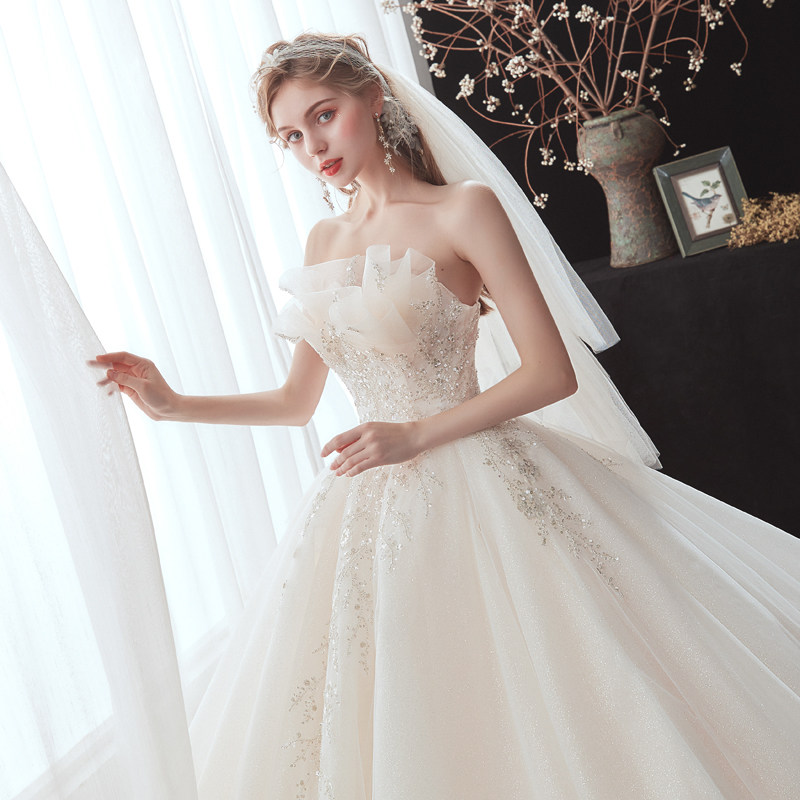 Main Wedding Dress Gown 2021 New 2022 Small Child Brides Winter Smears Superior Texture Starry Sky Big Trailing Light