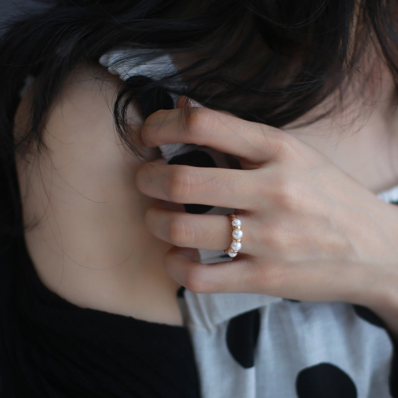 Japanese akoya Pearl Ring 18K Gold Water Pearl Ring Ring Exquisite M - Family Close