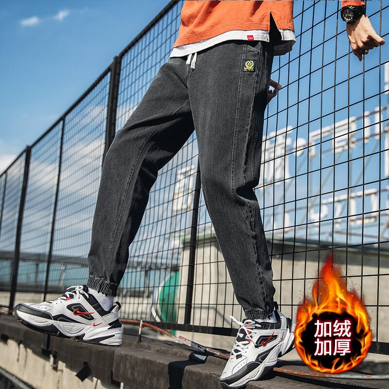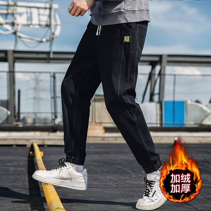 Autumn teen jeans men's fashion brand autumn and winter casual pants Junior high school and high school students velvet cow pants