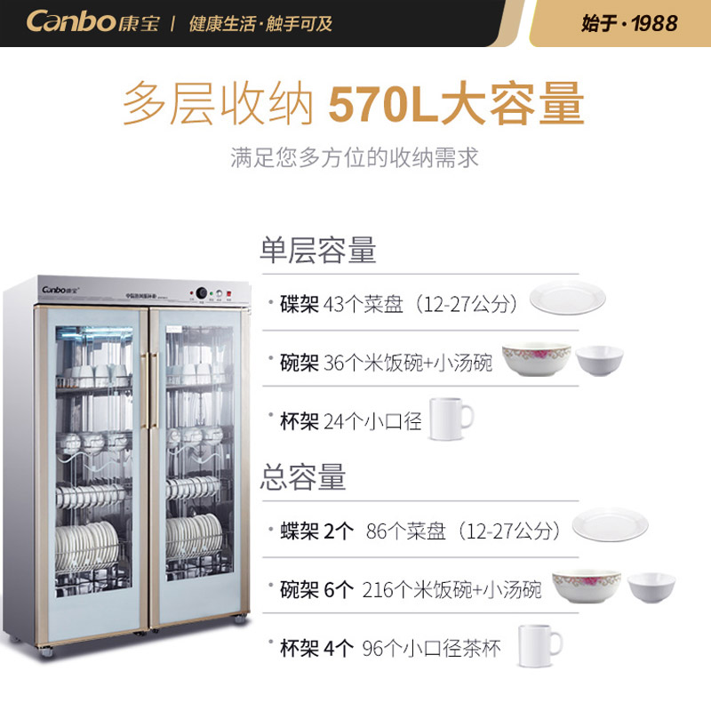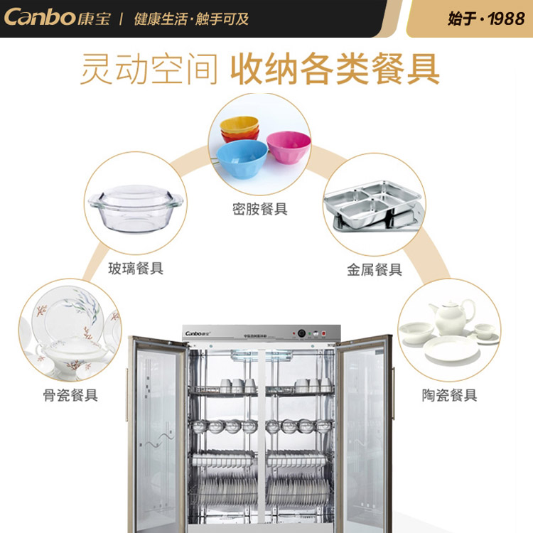 Canbo Kangbao GPR700A-5 large double-door stainless steel vertical canteen hotel commercial cleaning cabinet cupboard