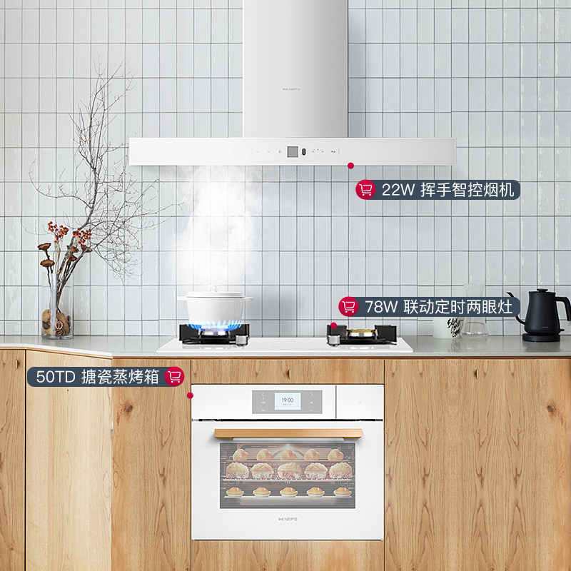 Neve range hood gas stove set white smoker hood purvey steam oven all home three piece set