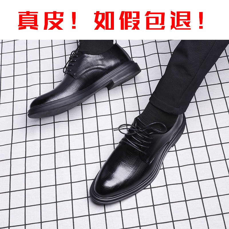 Casual Leather Shoes Man Genuine Leather Breathable Business Fitting Suit Youth Casual Black Heightening Wedding Groom Wedding Shoes