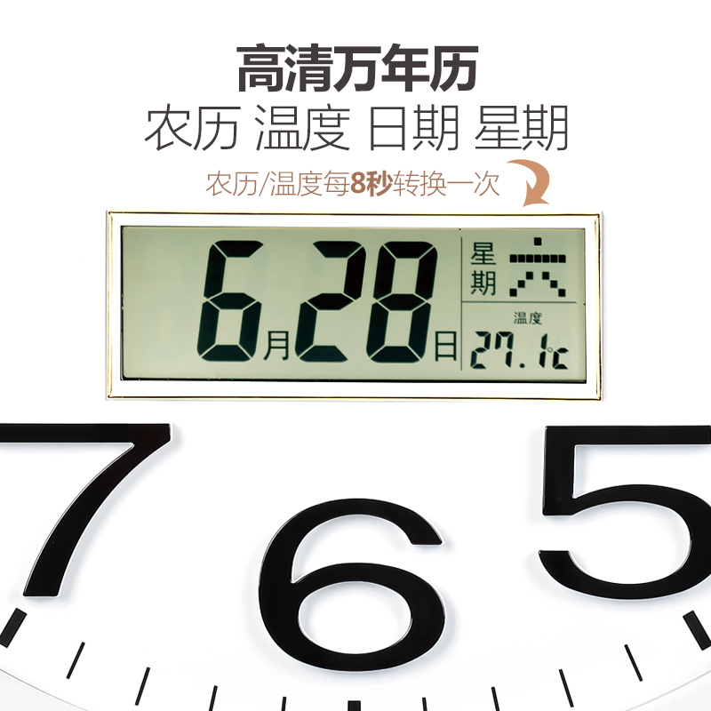 Overlord 19 inch large creative living room wall clock European round silent Quartz clock Electronic calendar wall clock