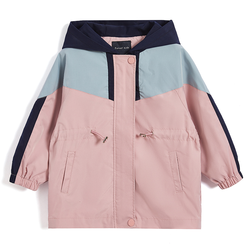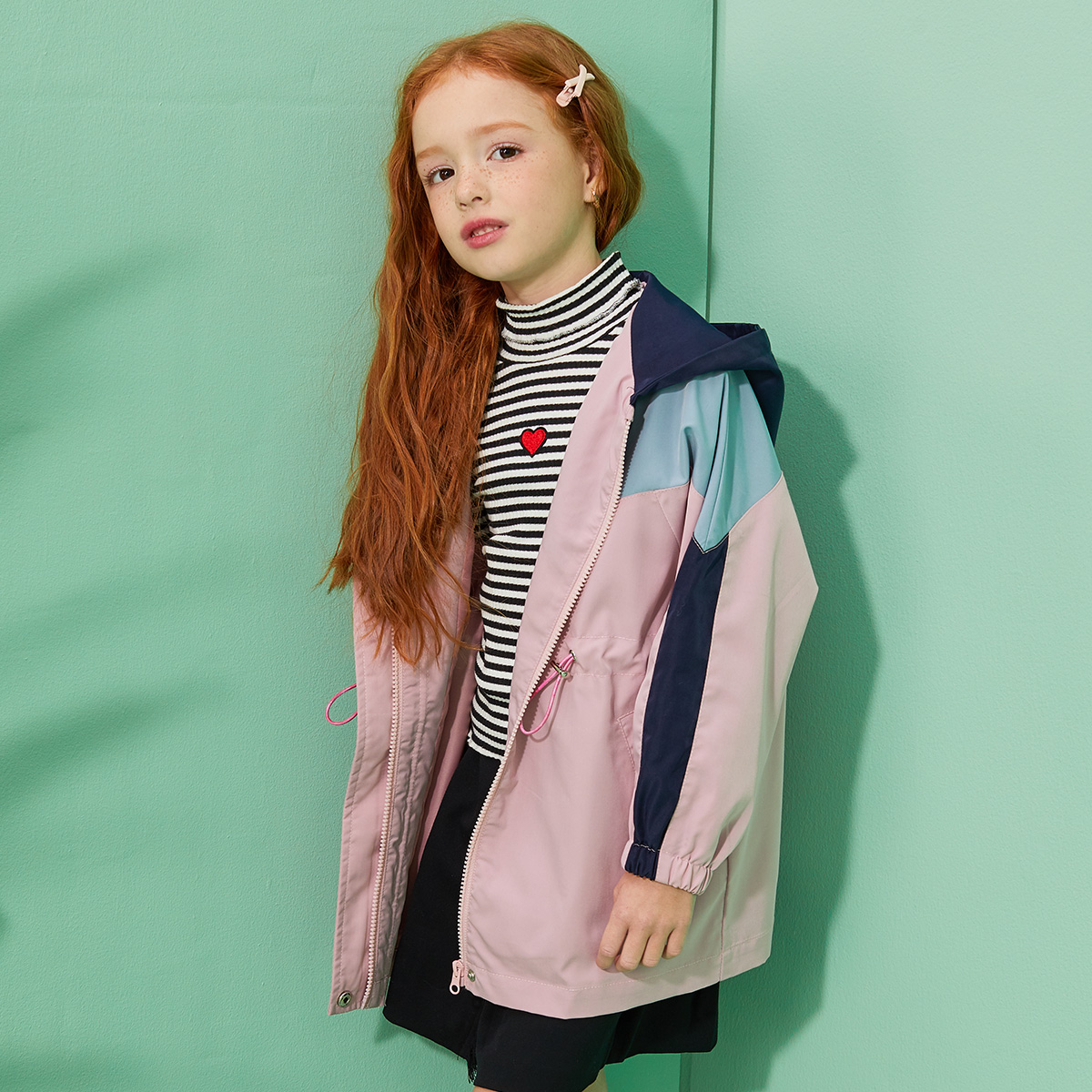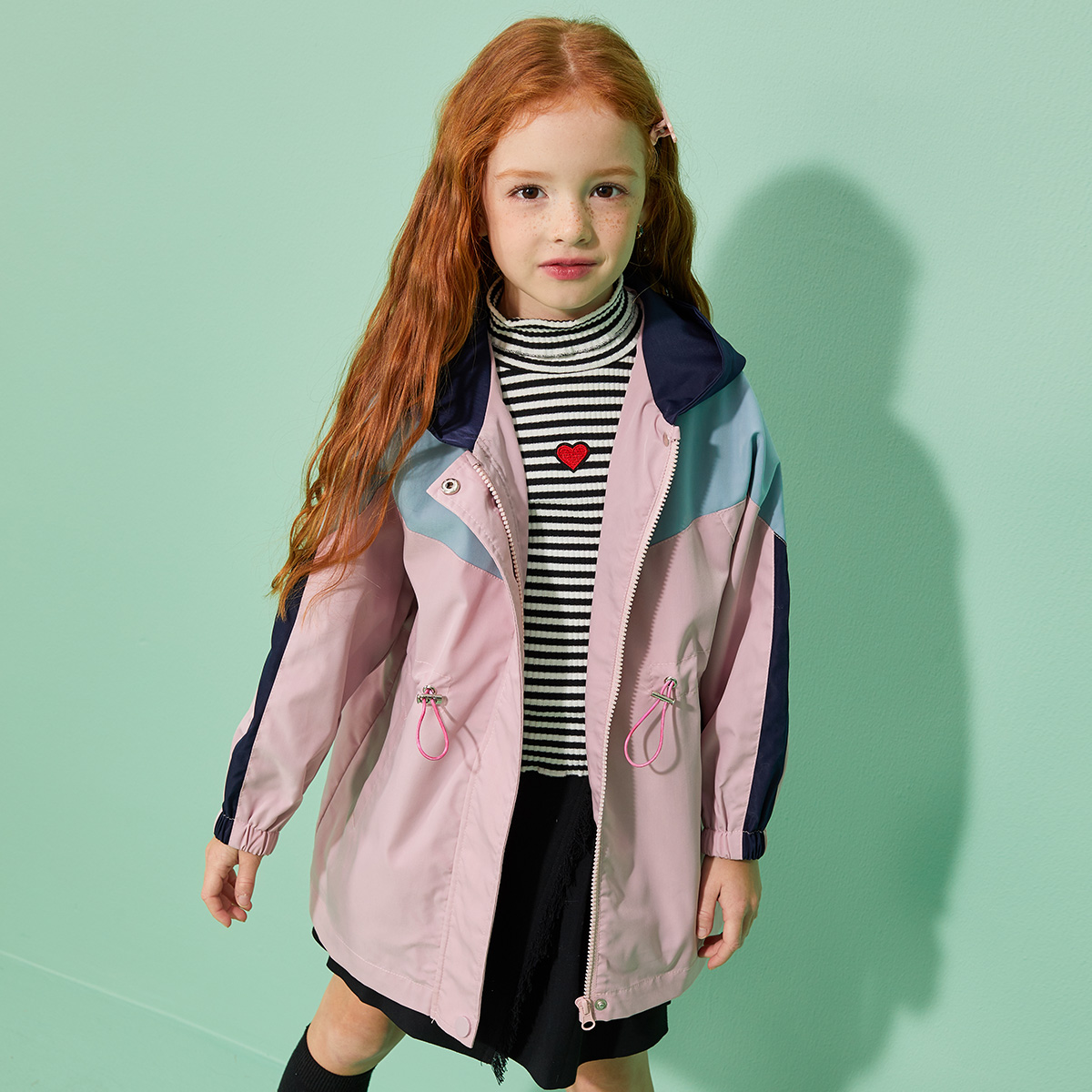 Children's clothing Girls ' windbreaker Ocean school 2021 spring and autumn new children's hooded long version Korean version of the middle and large children contrast coat