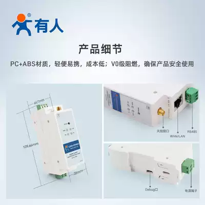 (Someone Internet of Things) rail wifi serial server wireless rs485 to Ethernet network interface communication IoT module shell V0 flame retardant industrial communication USR-DR40