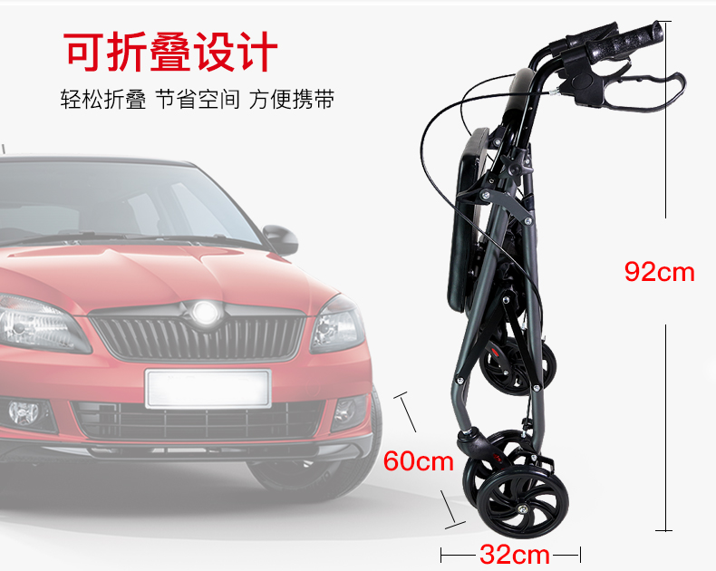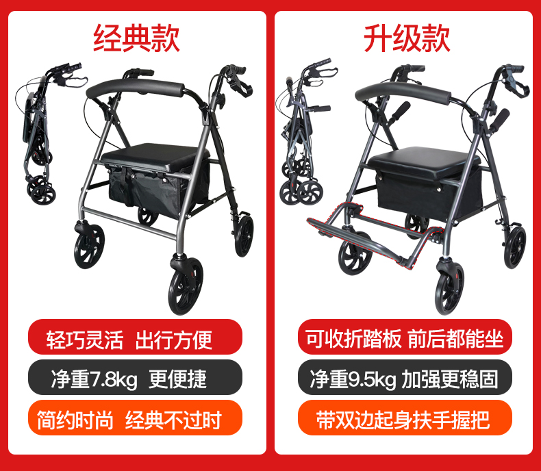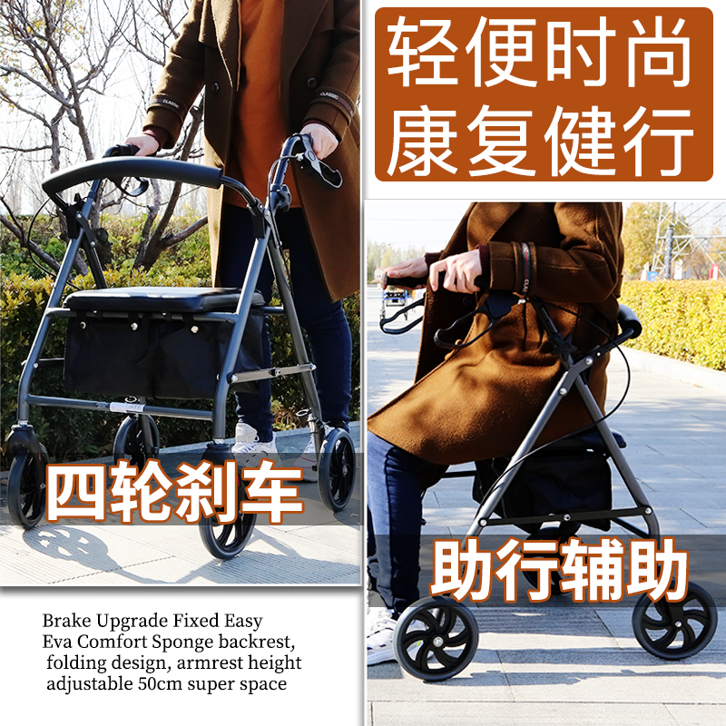 Walker Elderly trolley Rehabilitation walking walker shopping cart Buy food cart Folding Four-wheeler Hand Bike