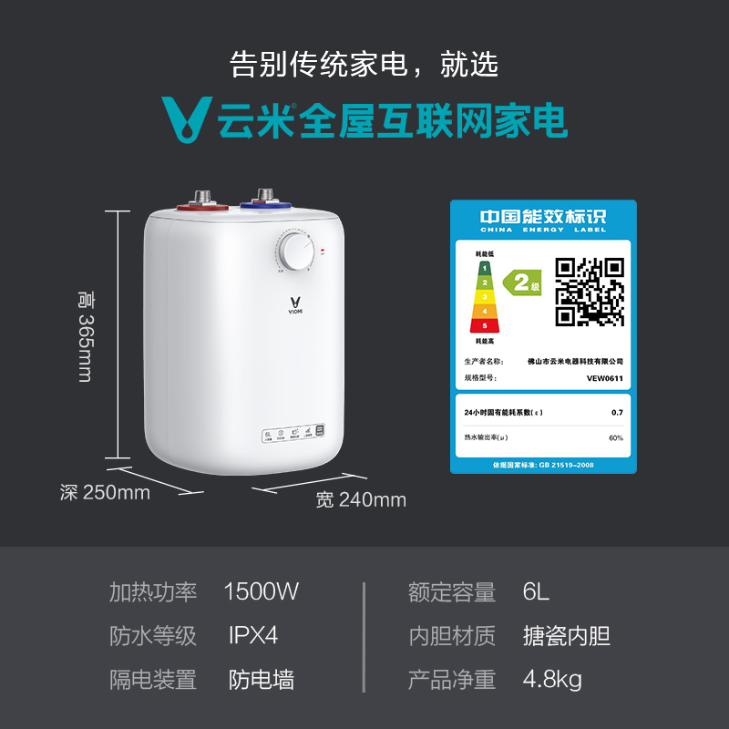 VIOMI Yun mi VEW0611 small kitchen treasure home instant heating small storage type electric water heater high power kitchen