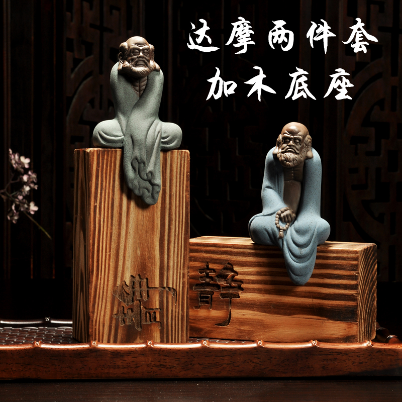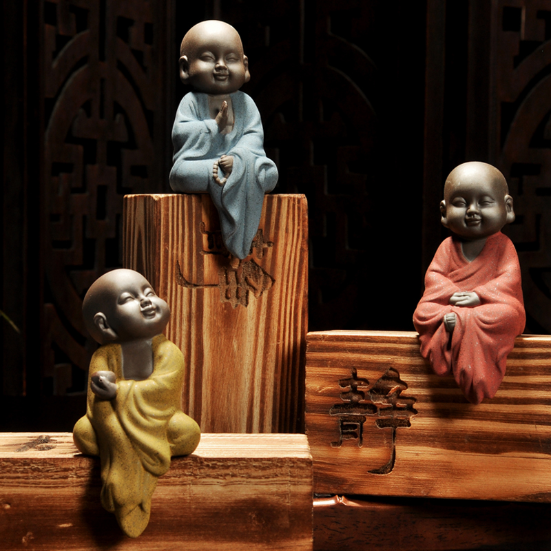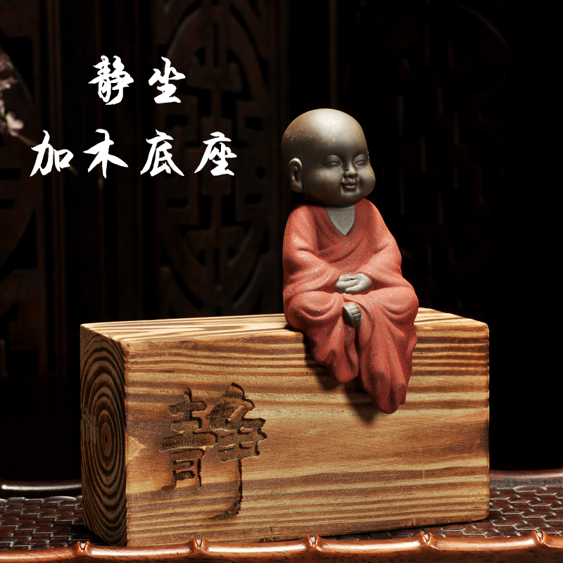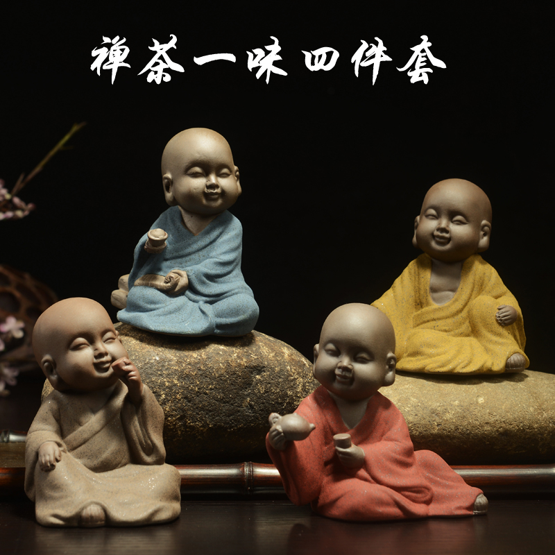 Zen tea blindly followed by four sets of tea instead of empty and contempent yet quiet and seesy with a small monk wooden base and a small monk wooden base The small monk wood base Little monk Three sets