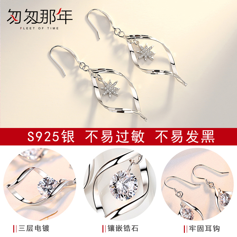 A pair of S925 silver star earrings A pair of swaying earrings A pair of hollow tassel earrings A pair of inlaid white diamond earrings A pair of inlaid pink diamond earrings A pair of inlaid blue diamond earrings Inlaid with precious stones