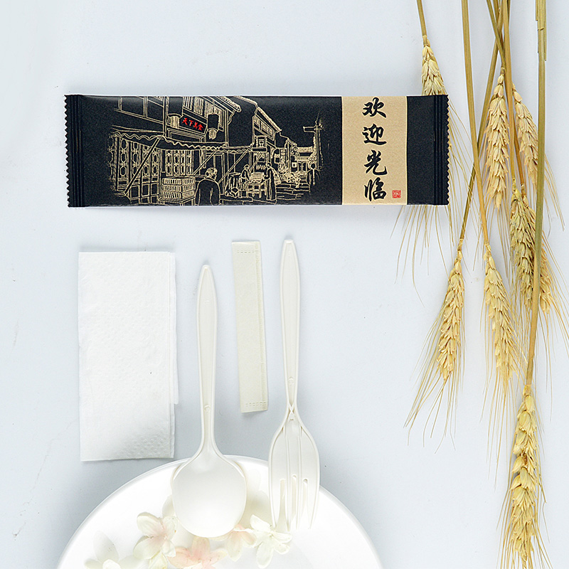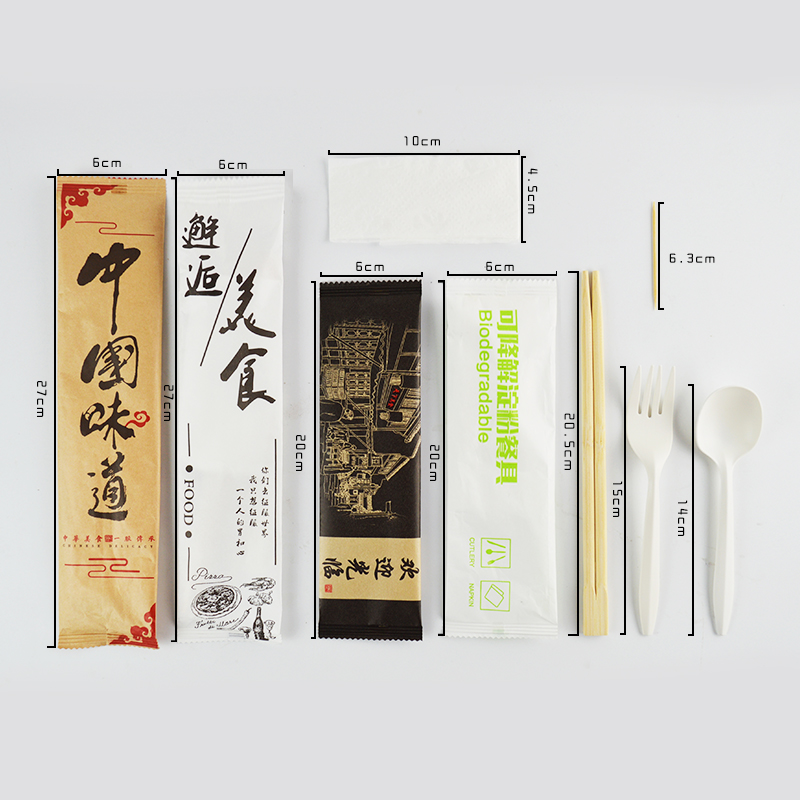Four pieces - Encounter 50 sets of four sets of food - China taste 50 sets of 6 inch fork knife - degradable paper film 50 sets of 6 inch fork knife - welcome to the film 50 sets of 6 inch fork knife
