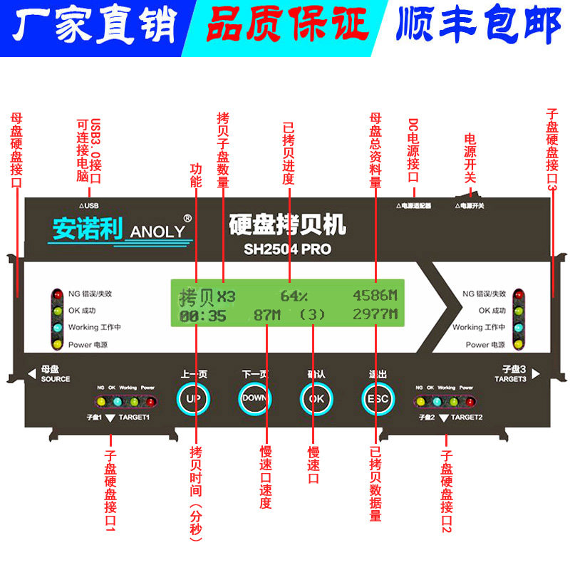 SH2504PRO Taiwan original MU hard disk duplicator data backup machine 1 tow 3 batch system to duplicator
