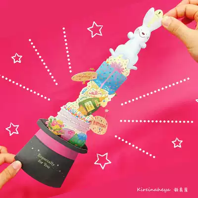 Japanese popular creative magic hat cute rabbit birthday card cake parent-child decoration fun card