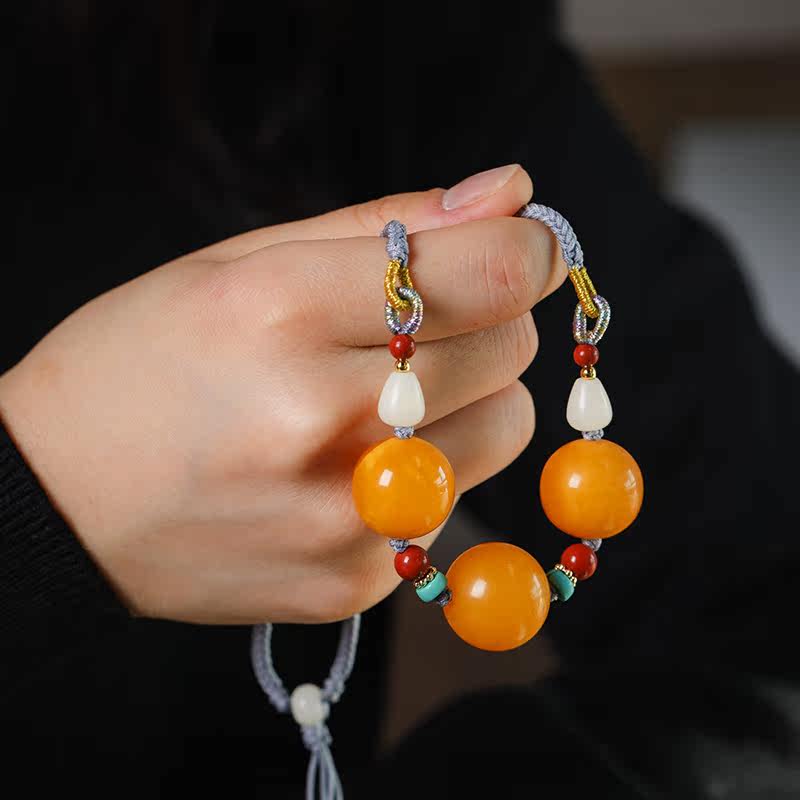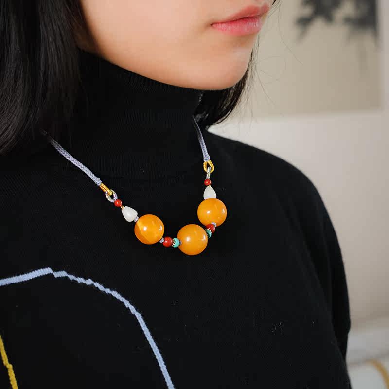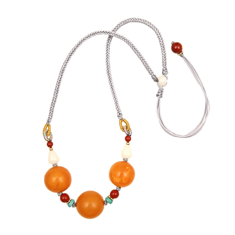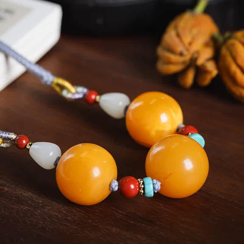 (Yanzi Zhen) 11 62 gr Natural Old Honey Wax Round Pearl Necklace Lock Bone Chain Pendant Amber and Men