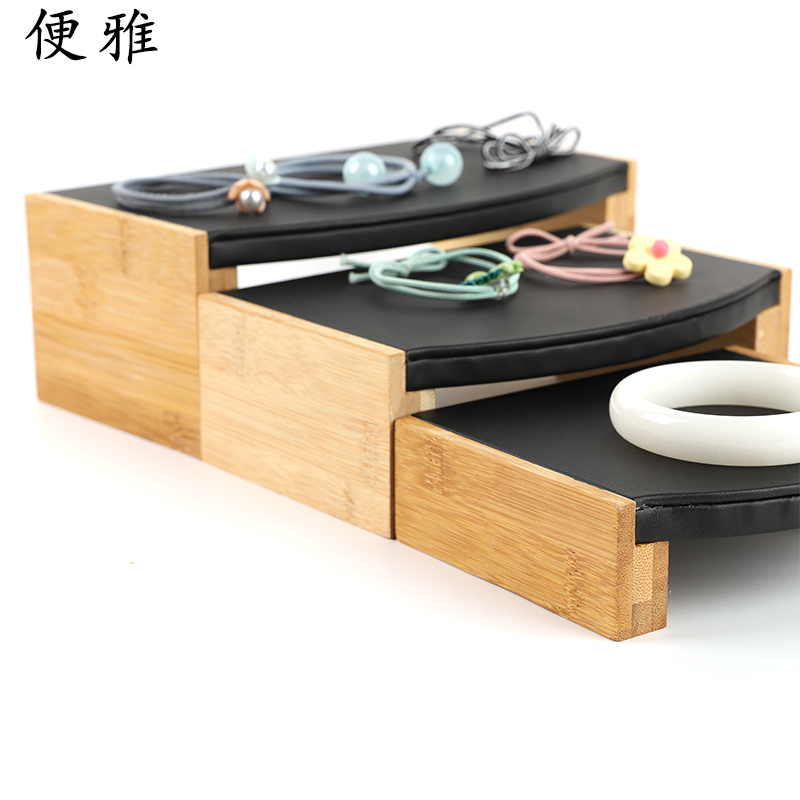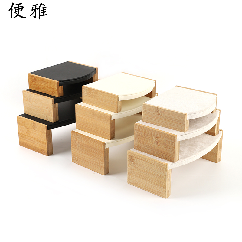 Bamboo and wood three-piece stool with black leather Bamboo and wood three-piece stool with white leather Bamboo and wood three-piece stool with rice velvet