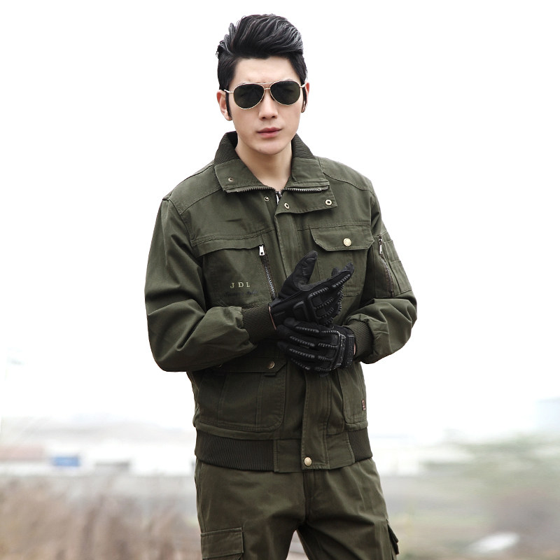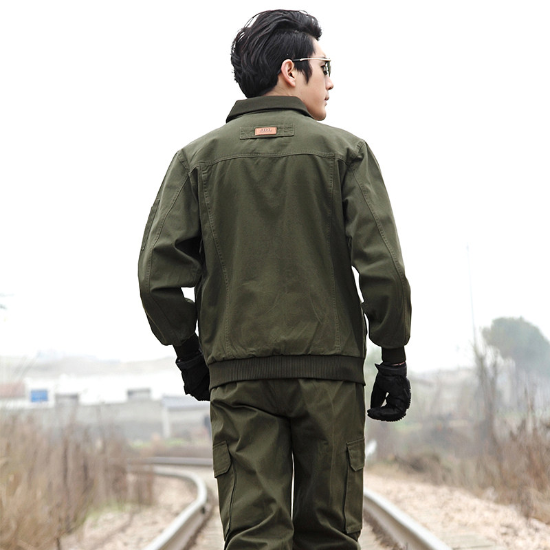 Sharp knife with work clothes suit labor insurance clothing spring and autumn thickened wear-resistant cotton army green anti-scalding electric welding multi-pocket tooling