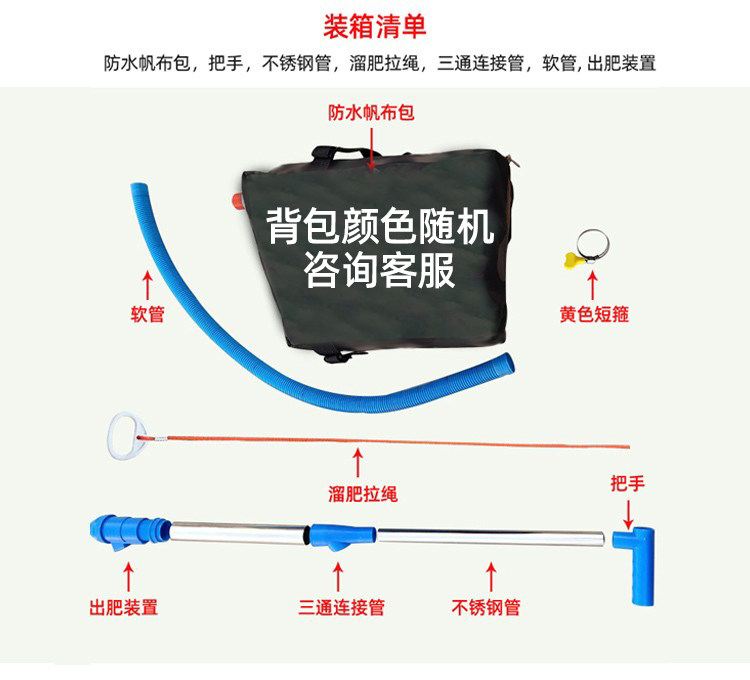 Single tube fertilizer applicator + backpack double tube fertilizer setter + backpack single tube fertilizer applicator (no bag. No barrel) separate backpack deluxe type (fertilizer applicator + plastic bucket)