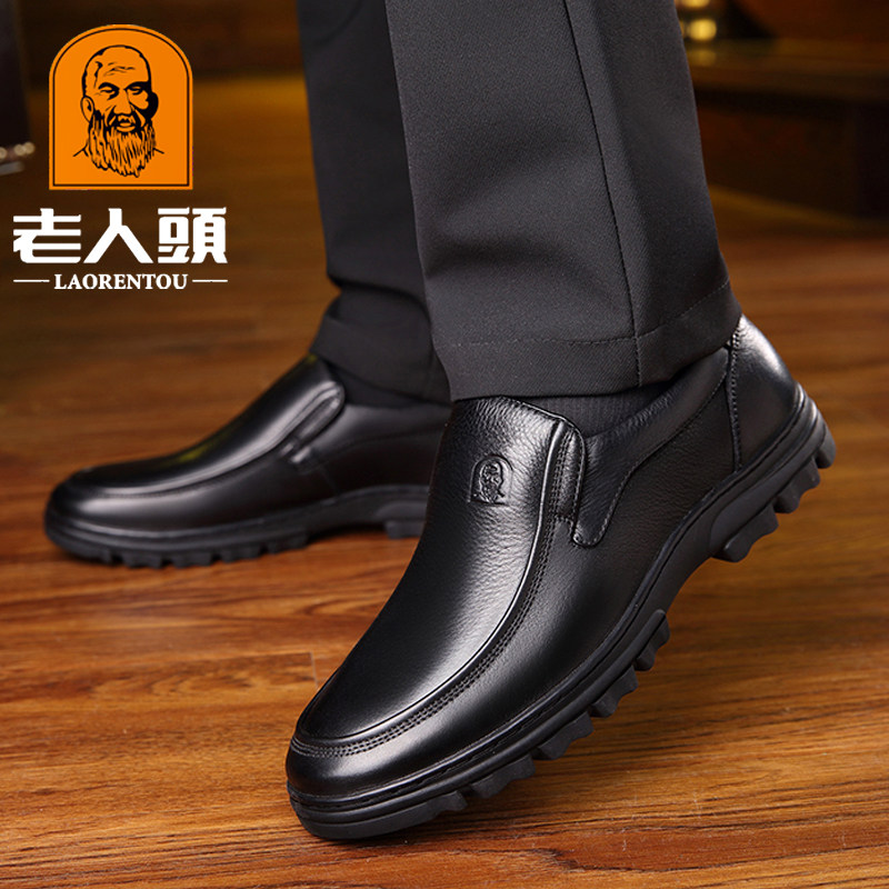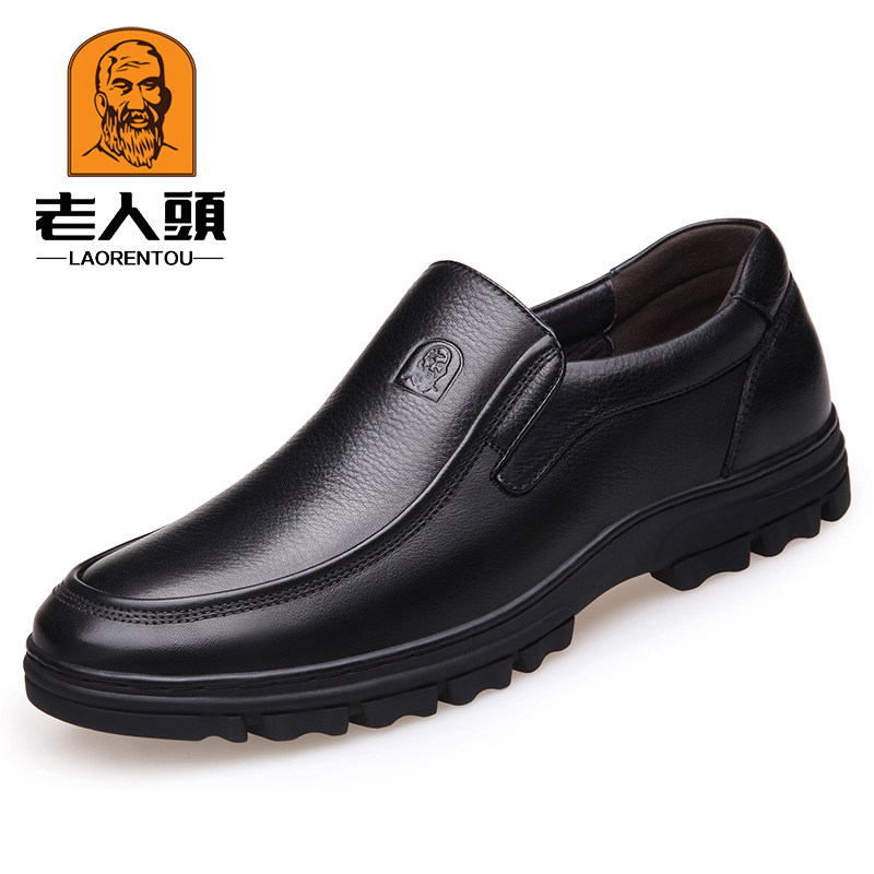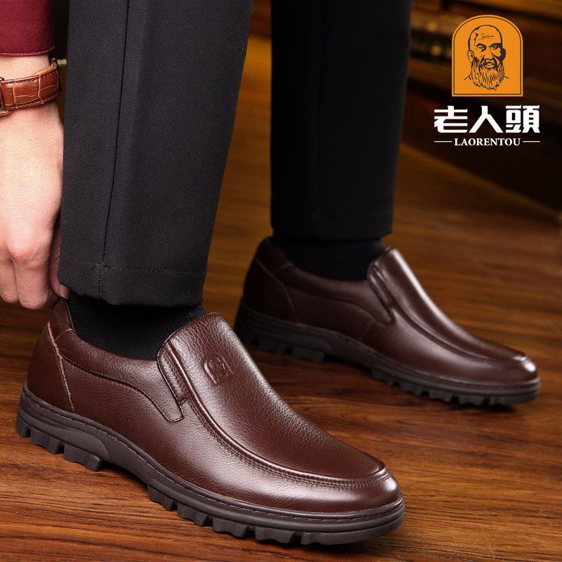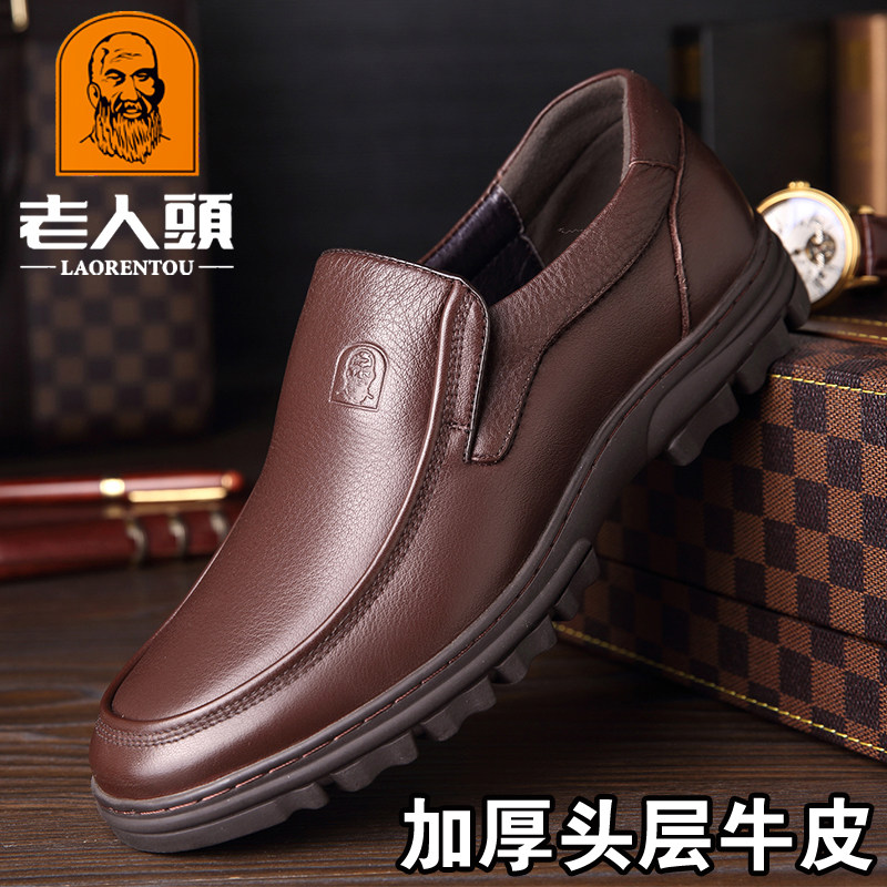 Old men's head leather shoes men's leather business casual men's shoes soft leather soft bottom upper line set of feet slip-on thick-soled dad shoes
