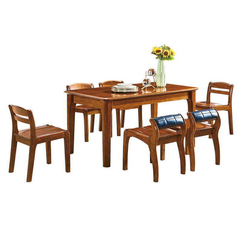 Full solid wood dining table and chair combination walnut western dining table modern Chinese living room rectangular dining table