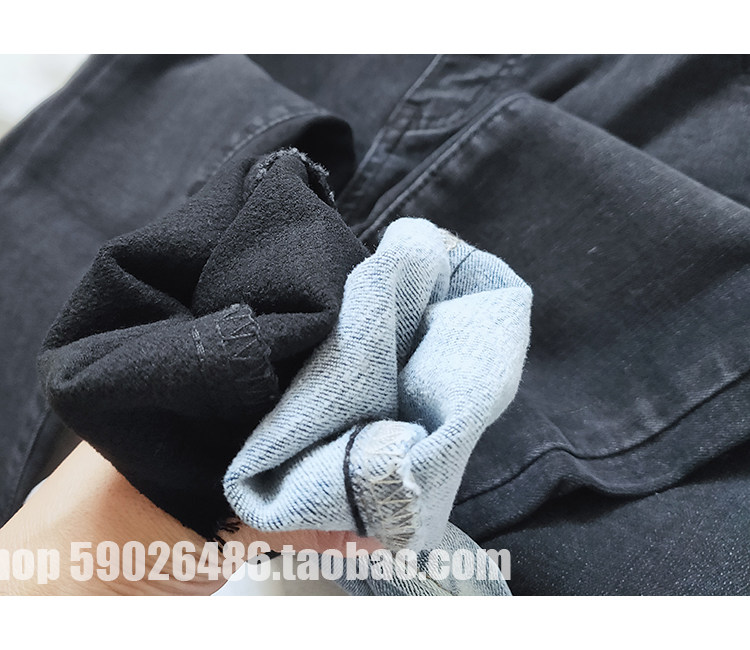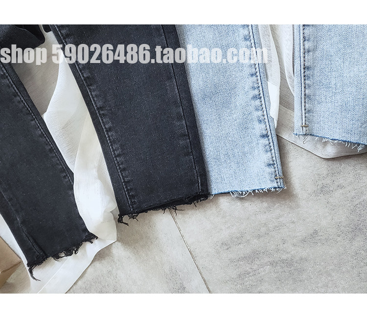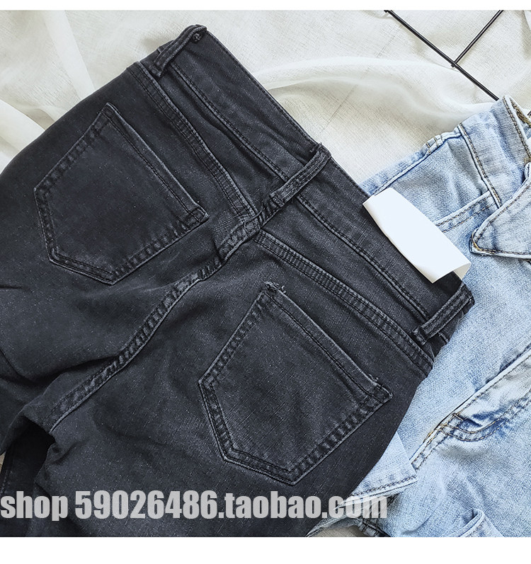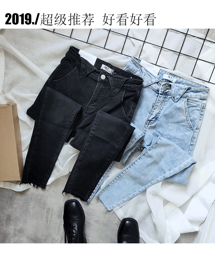 Thin velvet black thin high-waisted jeans women's fashion blue and white light blue and white nine-point smoke pipe pants tide