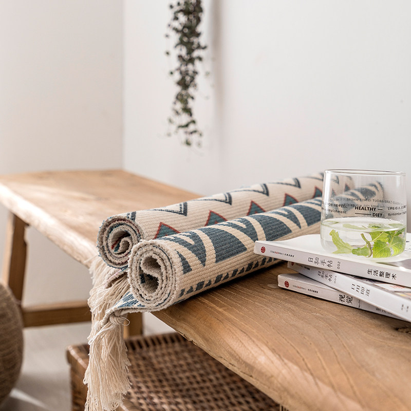 Day Style Cotton Hemp Ground Mat National Wind Bedroom Tea Table Cloth Art Footbed Minjuku Apartment Long Carpet Washable