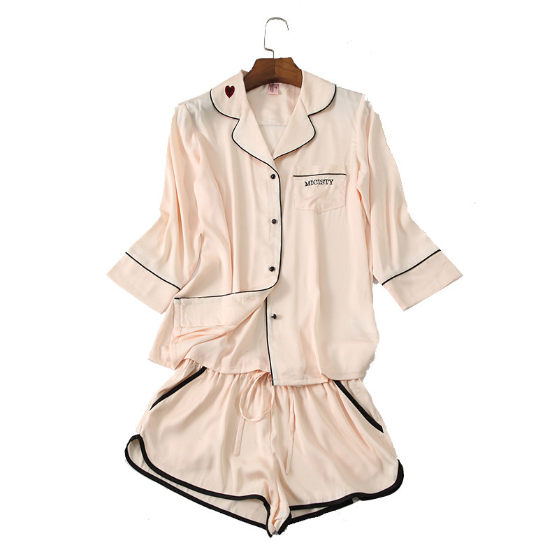 Micisty Dense Fair Di Sleeping Dress Woman Spring Summer Love Short Sleeve Naked Pink Ice Silk Suit Thin family clothes