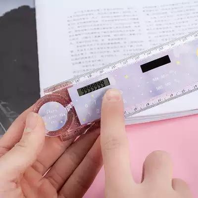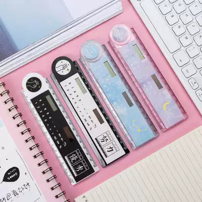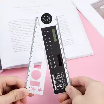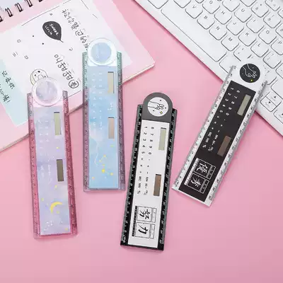 Multi-function zhe die chi children ins Wind pupils stationery cute creative zone calculator ruler ruler long 15cm plastic transparent 30cm to draw and measure