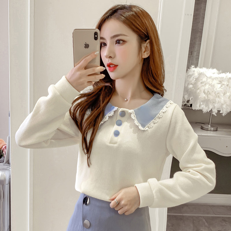 Net red style coat women's autumn 2021 New sweet age baby collar Joker long sleeve bottoming sweater