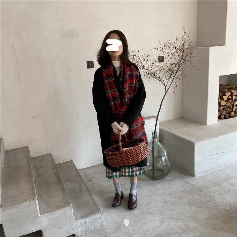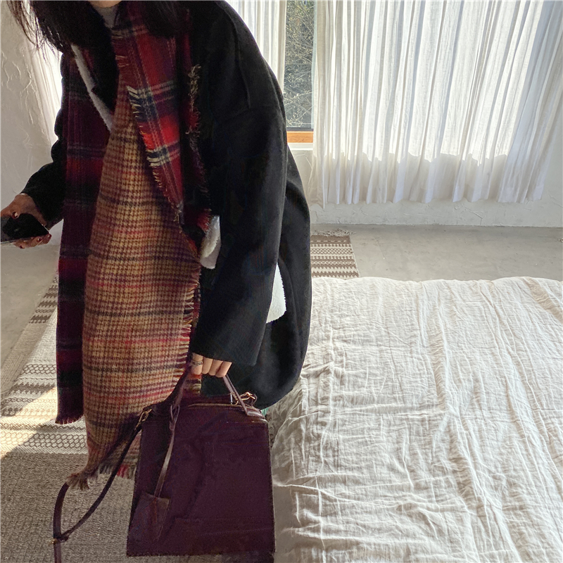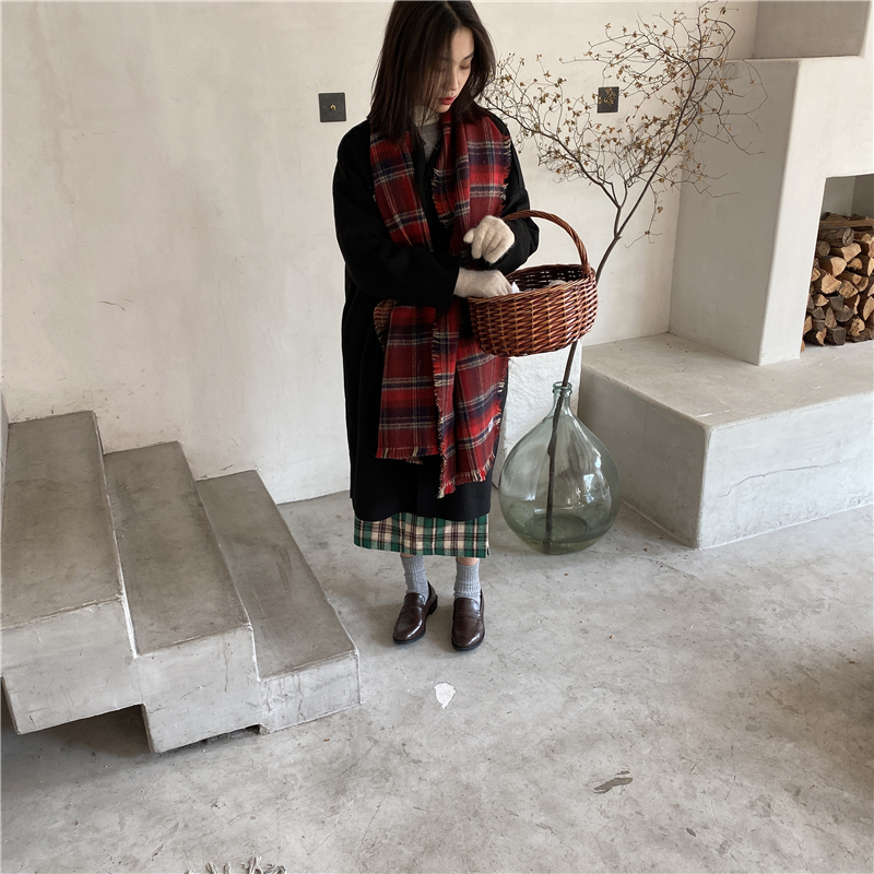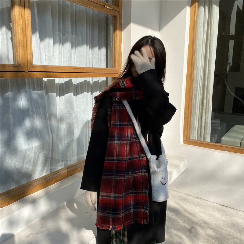 Abao-Korean style ins New Year's Christmas red plaid double-sided imitation cashmere student warm scarf tassel all-match