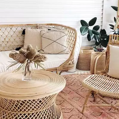 Small forest rattan Nordic rattan coffee table natural simple home living room homestay rattan round a few