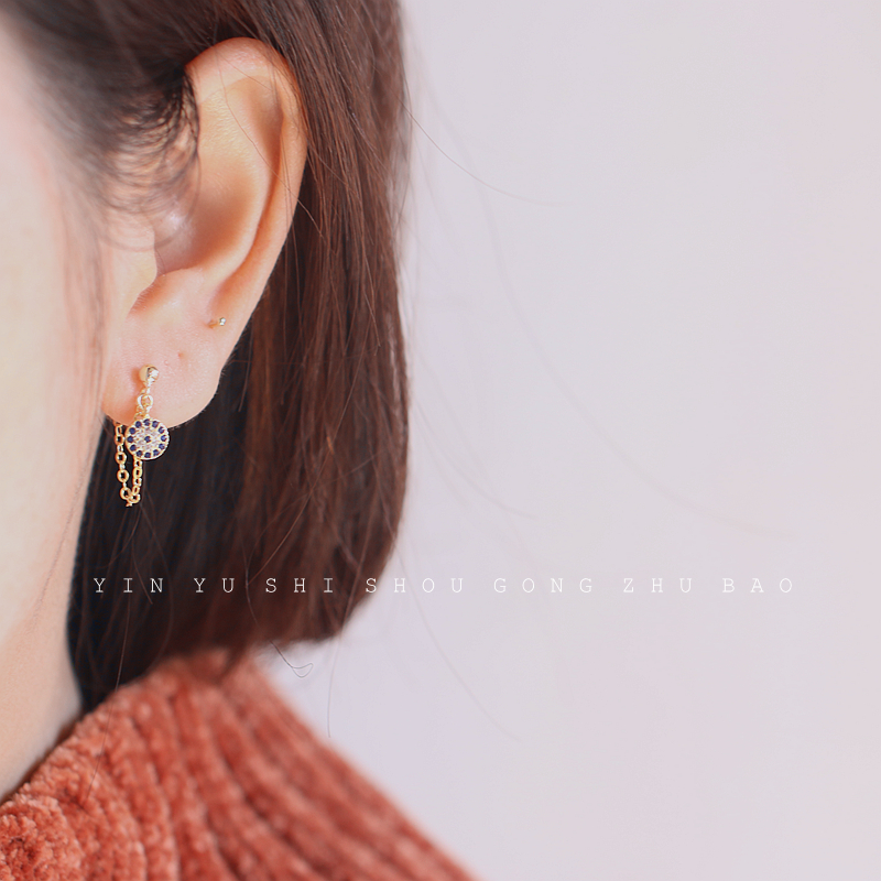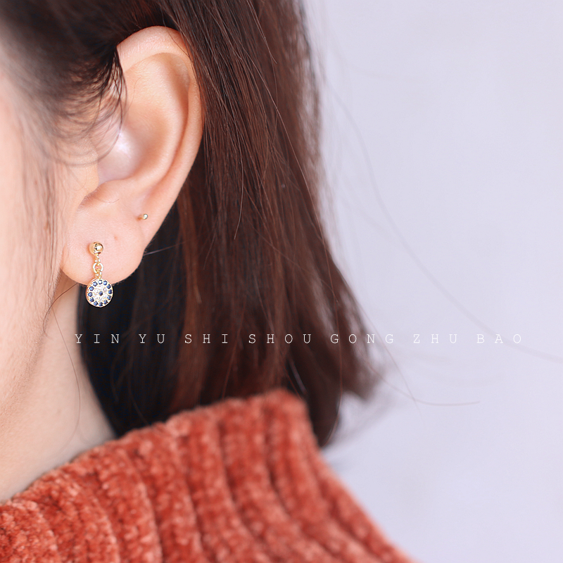 Devil's eye ear pin earrings Korean style 925 sterling silver plated 14k gold creative personality earrings earrings back hanging earrings