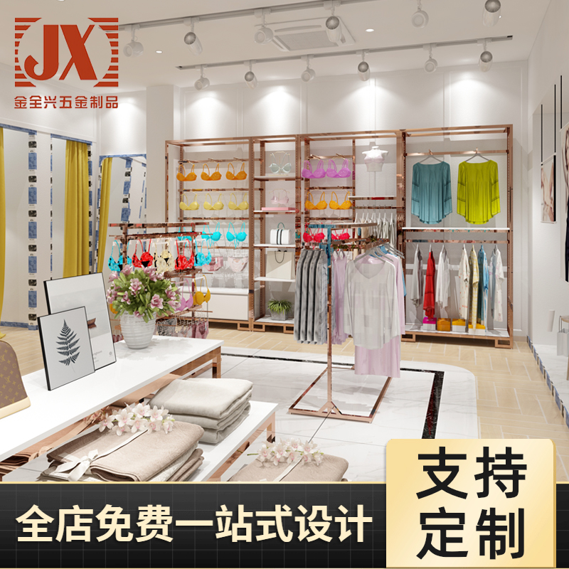 Custom high-grade rose gold stainless steel underwear display rack bra shop underwear pajama display cabinet shelf landing