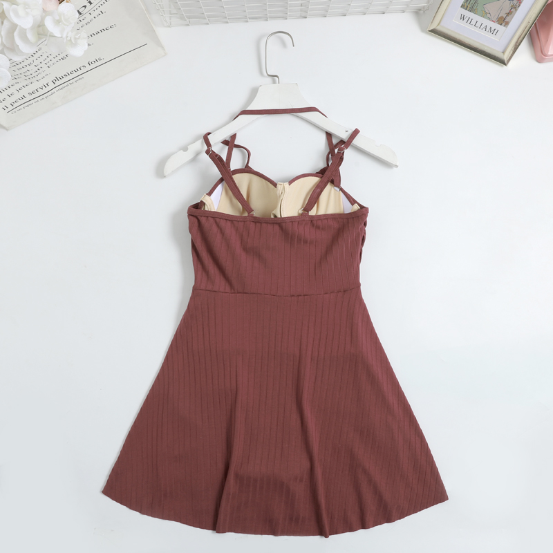 Skirt-style even for a swimsuit in a dress.