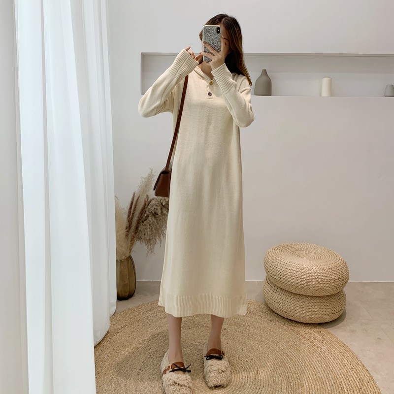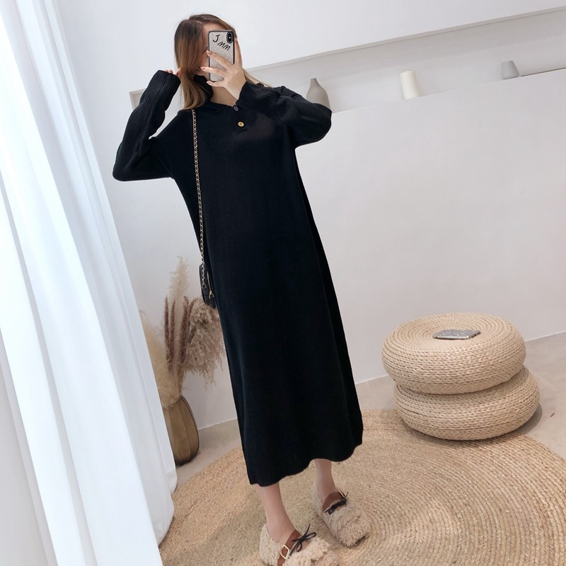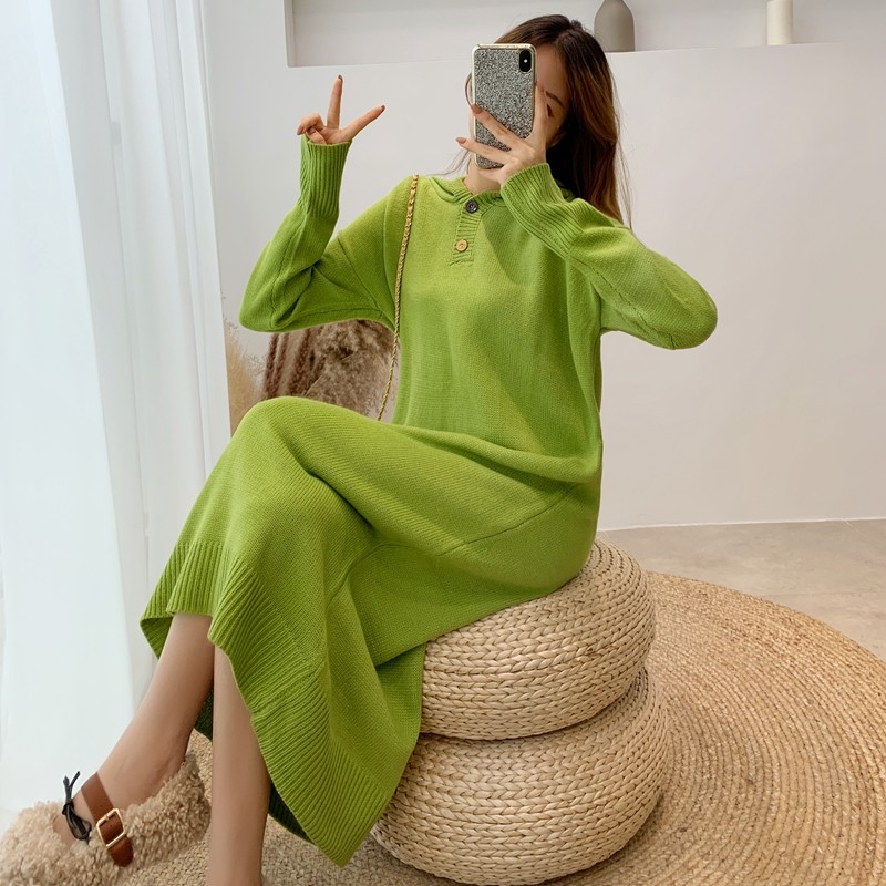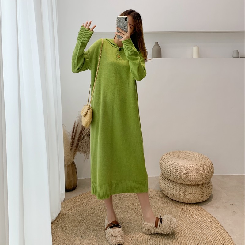 Large size size Fat mm slimmer ocean dress with cap loose knit long version of sweater skirt with kneecap in the kneecap