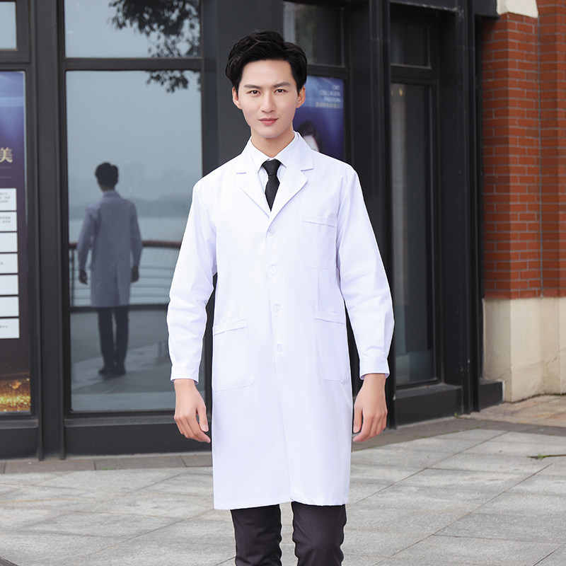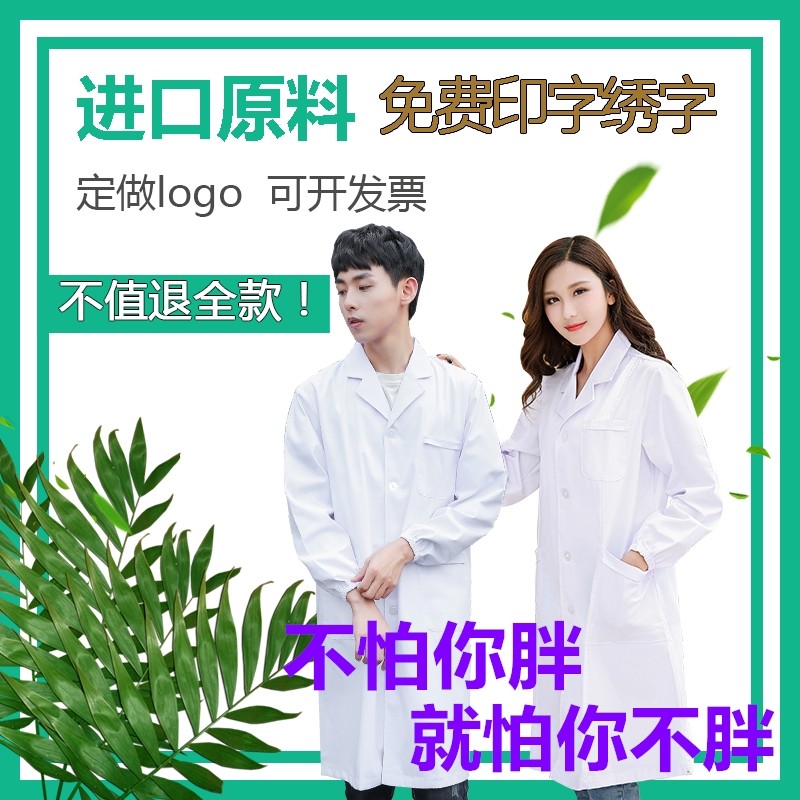 Long version of white coat doctor working clothes male long sleeves short large size for overweight and fattening 200 catty extra-size custom logo print