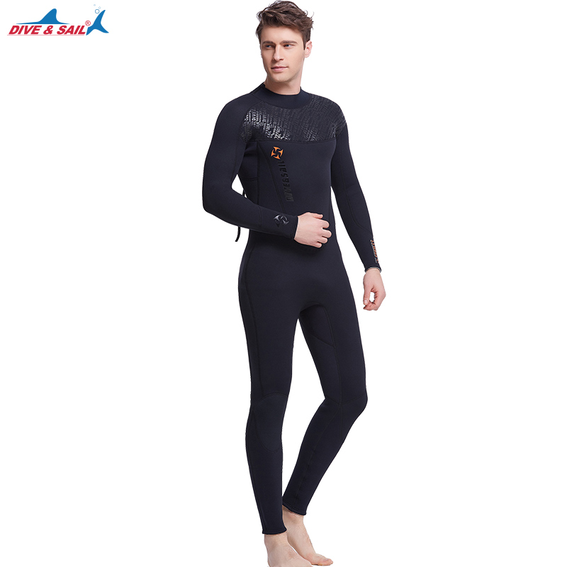 DIVE & SAIL wetsuit men's 3-5MM one-piece plus fleece warm women's long sleeve surf cold protection jellyfish winter swimsuit