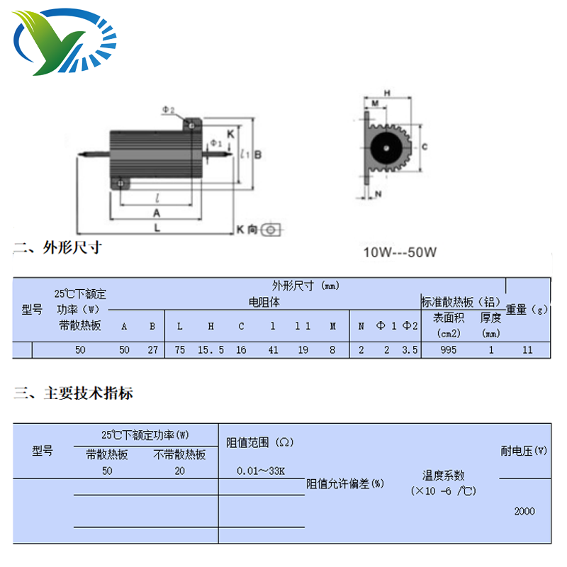 50W gold power aluminum shell resistance 1 3 6 8 8 2 10 12 15 18 20 20 300R 500 O1 5K