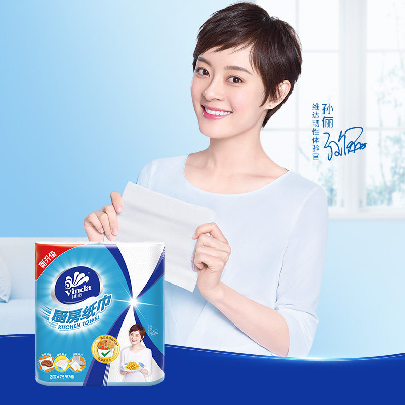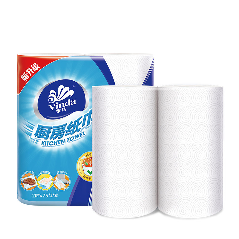 Vinda kitchen paper towel 1 lift 2 rolls of oil-absorbing roll toilet paper Sanitary toilet paper Cooking paper towel absorbs water and removes oil