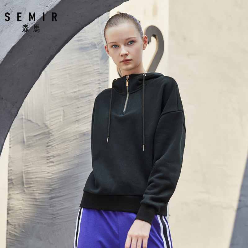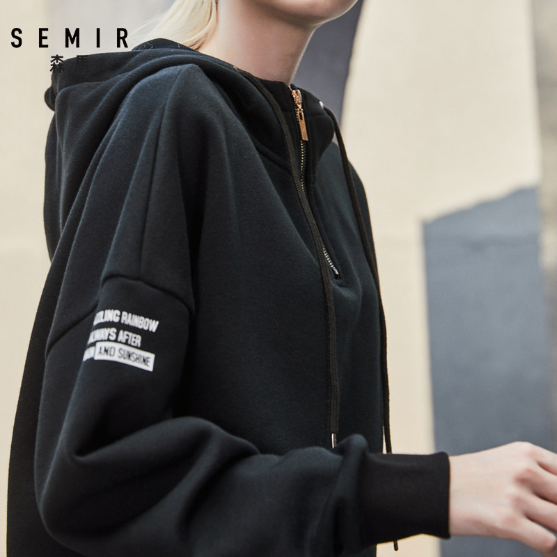 Senma 2019 winter new pants thick cotton T women padded plus velvet semi-high collar printed hooded loose slim jacket