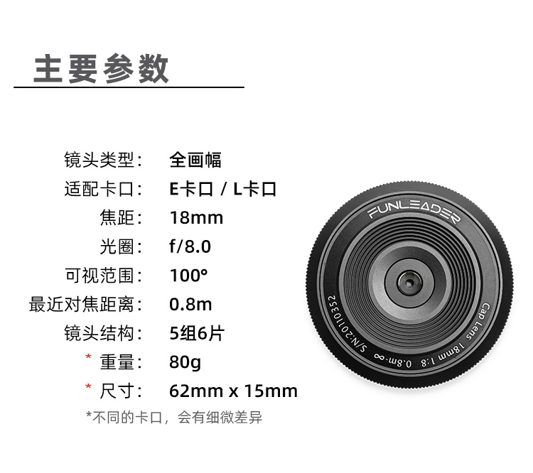 Funleader rice grain 18mmF8 full-picture ultra-thin micro-single eye camera camera lens suitable for horse FP Leica L Sony E