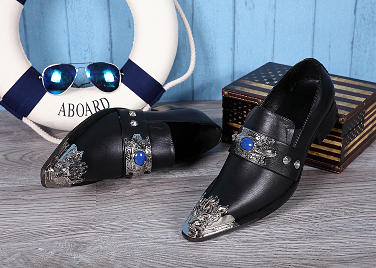 JACKS trend iron shoes leather breathable British hair stylist personality pointed high-heeled stage heightening men's shoes
