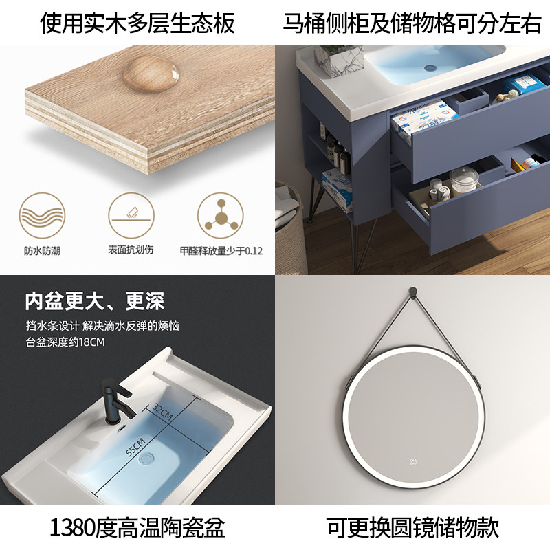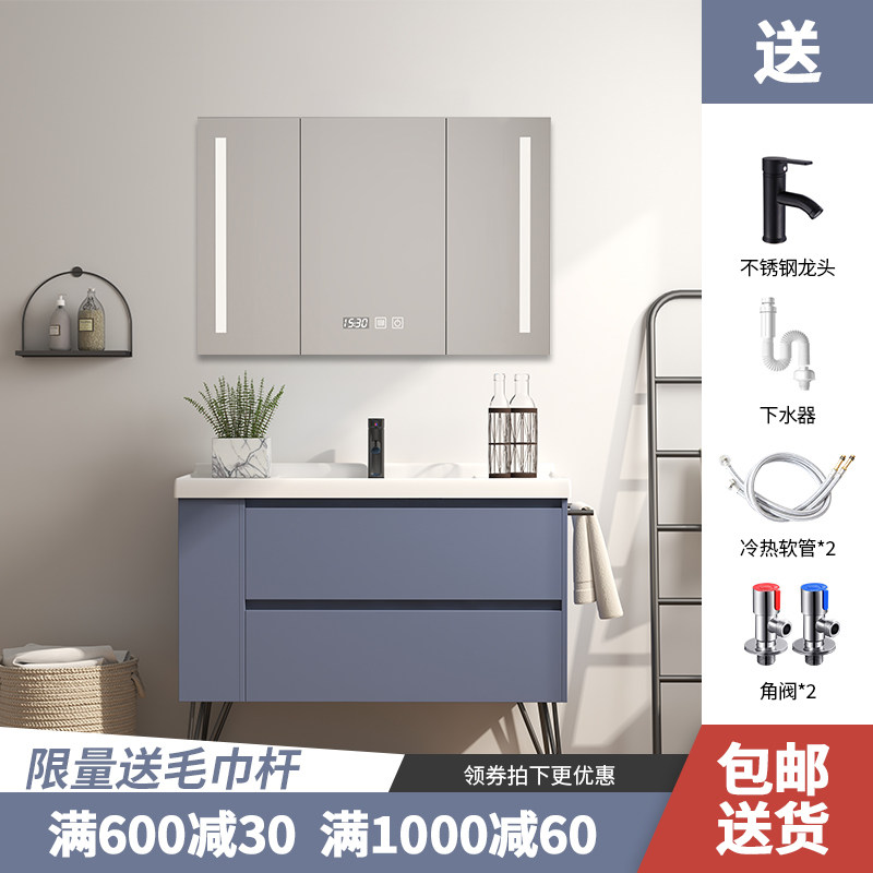 Bathroom smart mirror Bathroom cabinet Sink Wash basin basin cabinet Combination Powder room sink Blue mirror cabinet Nordic