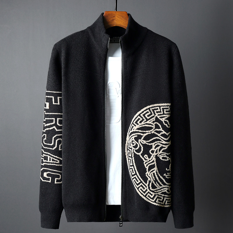 AA Medusa black imitation mink cardigan autumn and winter new knitted sweater sweater jacket male Korean version of the trend spring
