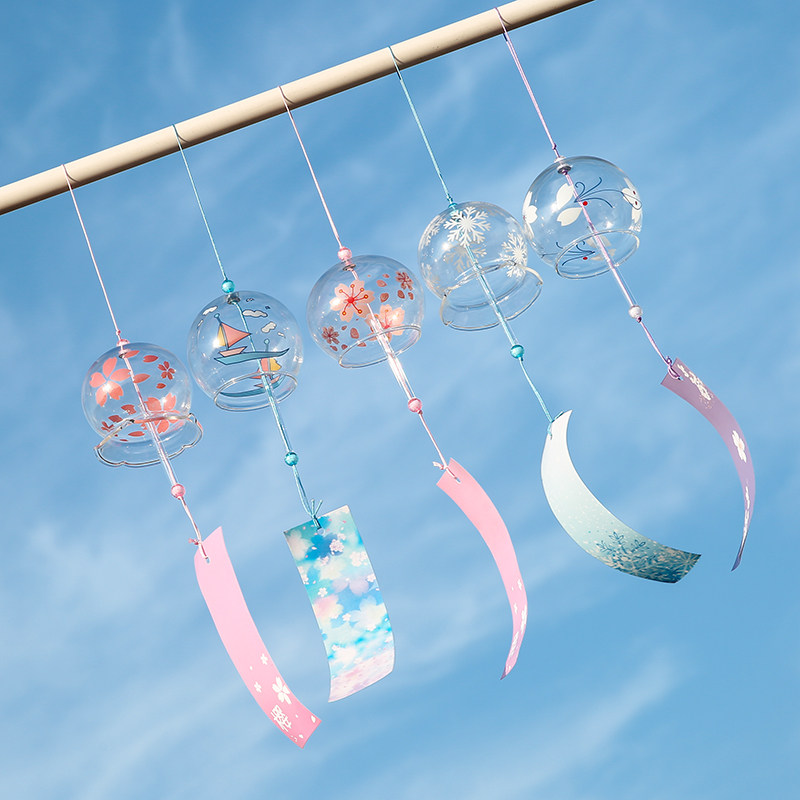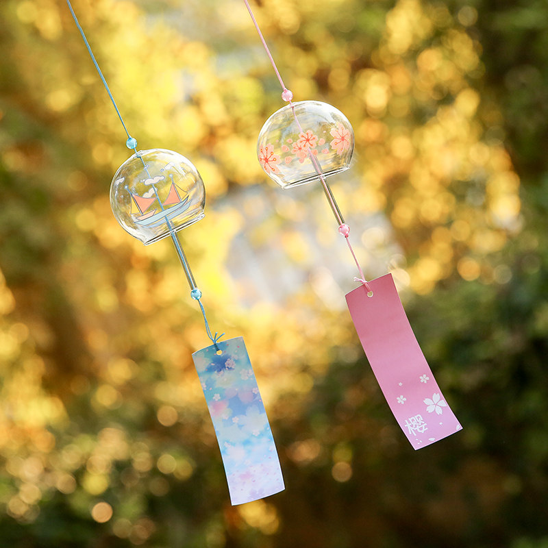 Japanese dream cherry blossom wind chime hanging ornament creative girls balcony small fresh decoration open door bell shop pendant
