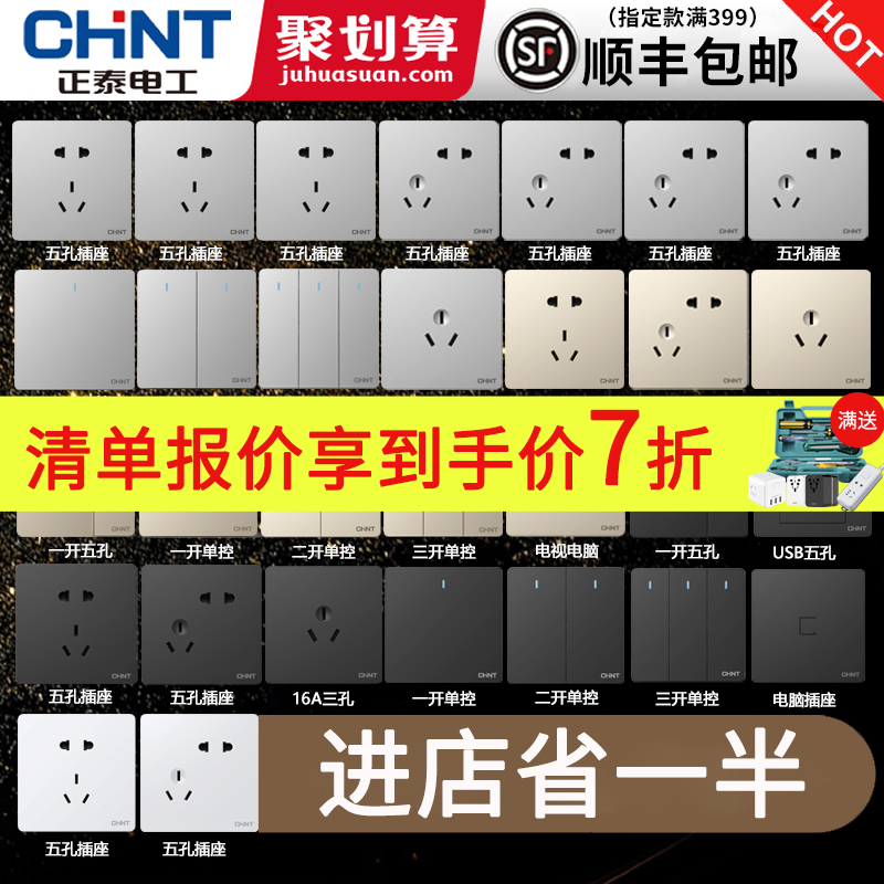 Chint silver switch socket type 86 panel porous wall Nordic household black Gray borderless whole house package