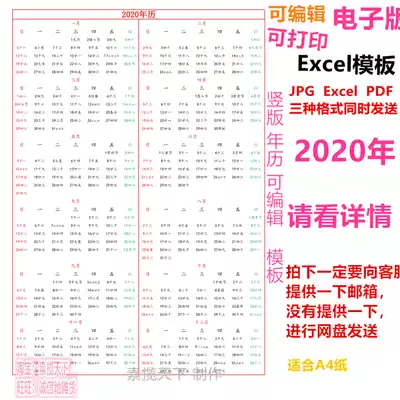 2020 Annual Calendar Electronic Calendar Table Calendar Lunar Calendar Vertical Print A4Excel Format 1 Sheet a Year