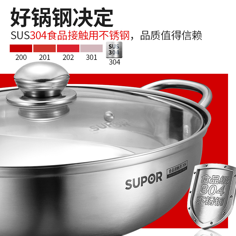 Supoir Hot Pot Pan Mandarin Duck 304 Stainless Steel Thickened boiling pot Home Tonpot Gas Stove Hot Pot Basin-Taobao
