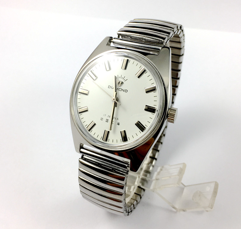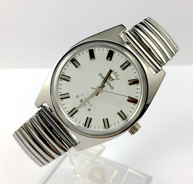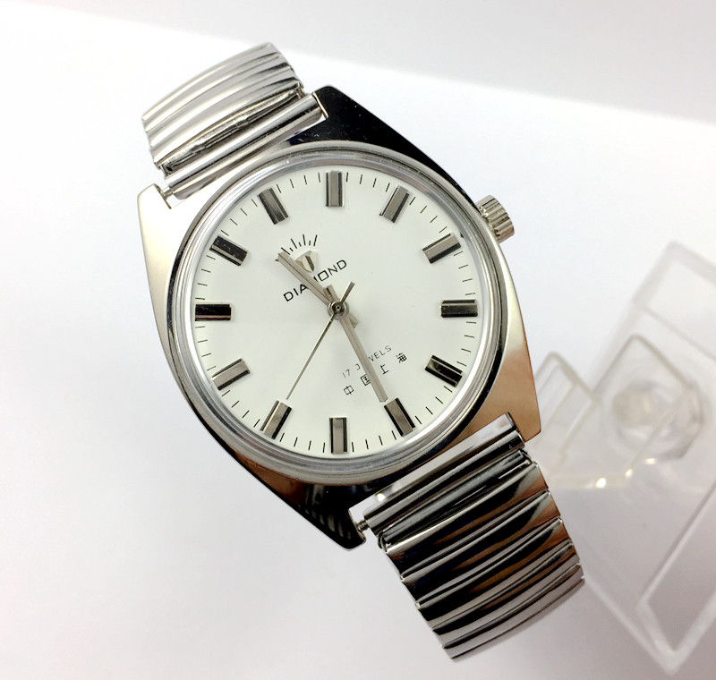 Original stock Shanghai watch factory four factory large white steel diamond brand manual mechanical watch diameter 38mm elastic band