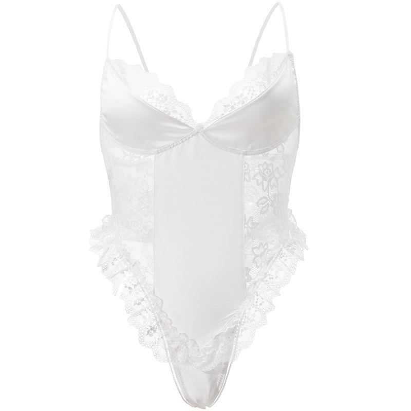 Sexy pajamas women summer lace lotus leaf thin section high waist suspender jumpsuit hot underwear temptation husband artifact