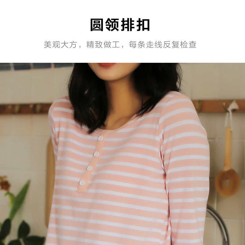 Sleepwear Women's spring autumn pure cotton long sleeves Two-style suit with chest cushion can be worn outside fall large size Size Relaxation Home for autumn