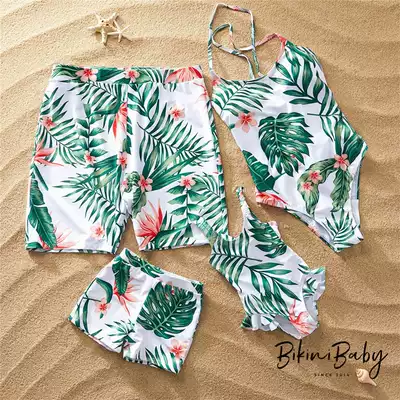 BikiniBaby resort hot spring seaside parent-child swimsuit A family of four family swimsuit one-piece swimsuit printing